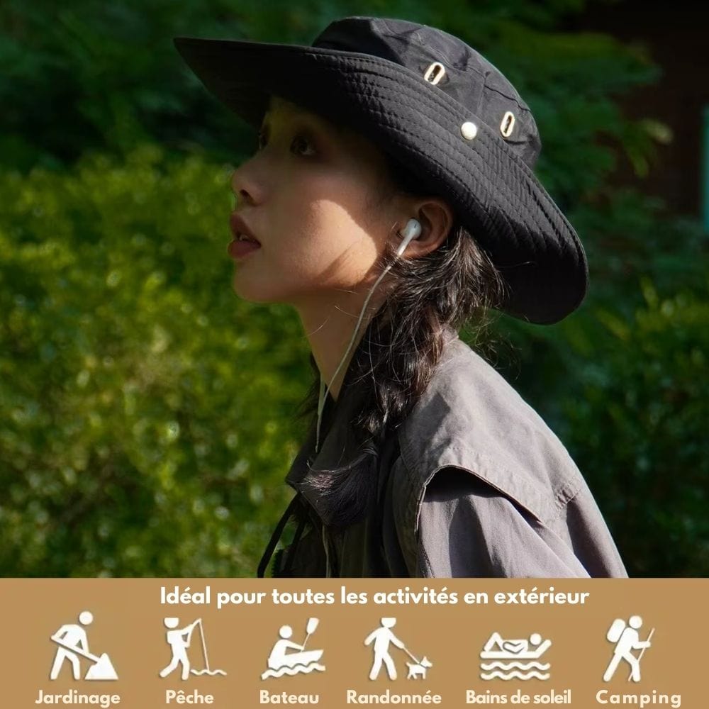 En été, il est essentiel de se protéger du soleil sans compromettre son confort. Ce chapeau à large bord offre une barrière efficace contre les rayons UV tout en restant agréable à porter. Son design pratique permet de rester au frais tout en protégeant efficacement le visage et la nuque.