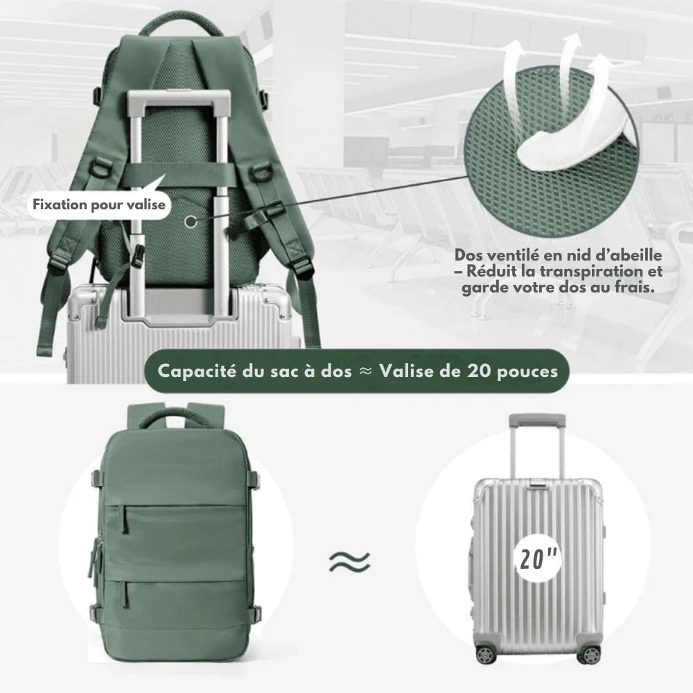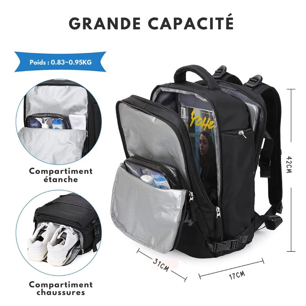 Les valises encombrantes, les frais de bagages et les heures perdues en enregistrement… c’est fini ! Ce sac à dos format cabine est conçu pour vous offrir la capacité d’une valise tout en restant compact et pratique. Son ouverture à 180° type valise permet un rangement optimal de vos vêtements, accessoires et gadgets. Avec ses multiples poches et son compartiment à chaussures séparé, il garde tout organisé et accessible en un instant.