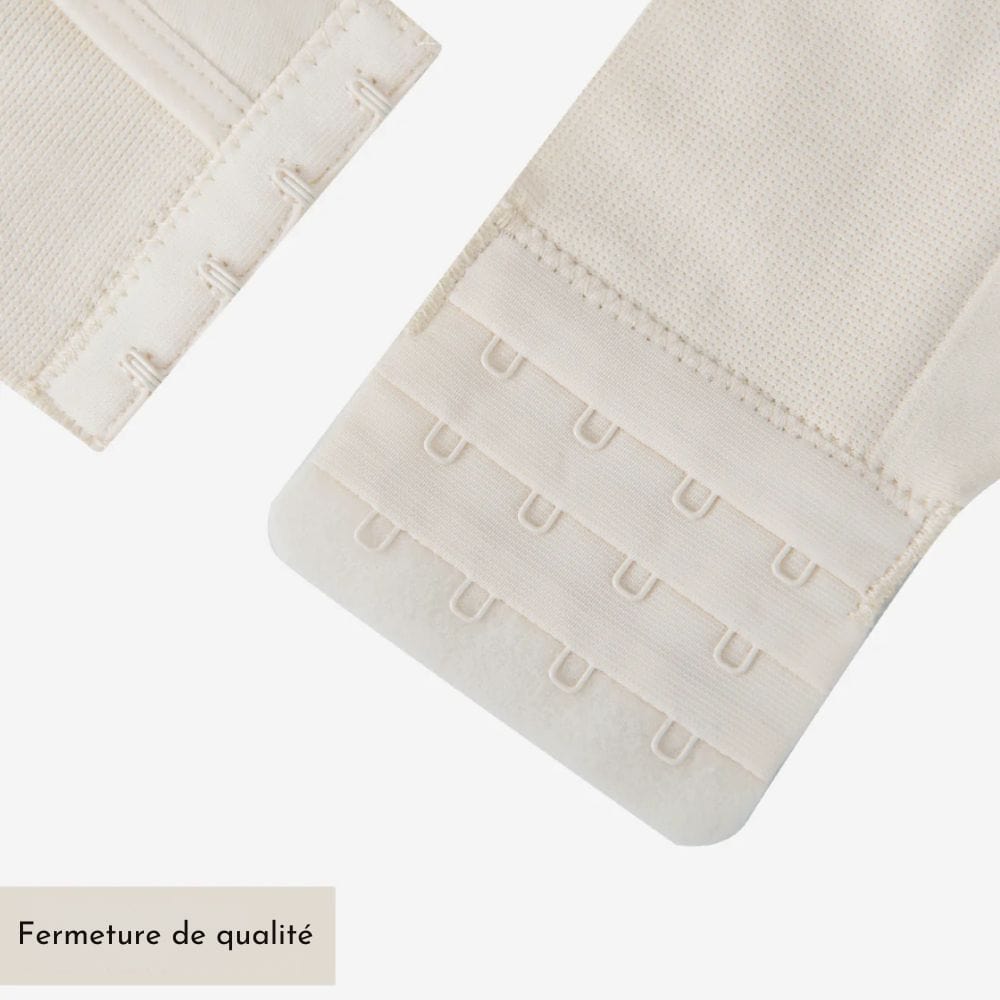 Sa matière douce et respirante glisse sur la peau. Le tissu extensible s’adapte à chaque mouvement, pas besoin de le réajuster sans cesse. L’absence de coutures gênantes et le fermoir facile à attacher en font une pièce idéale pour tous les jours – et même pour dormir.