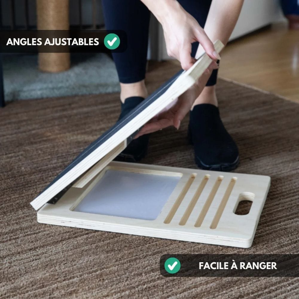 Pas besoin d’être sportif ou souple pour profiter des bienfaits de StretchBoard+. Grâce à ses 5 niveaux d’inclinaison, tout le monde peut l’utiliser selon ses besoins. Sa surface antidérapante assure un appui sécurisé, même pieds nus. Léger et facile à ranger, il vous accompagne partout : maison, bureau, salle de sport.