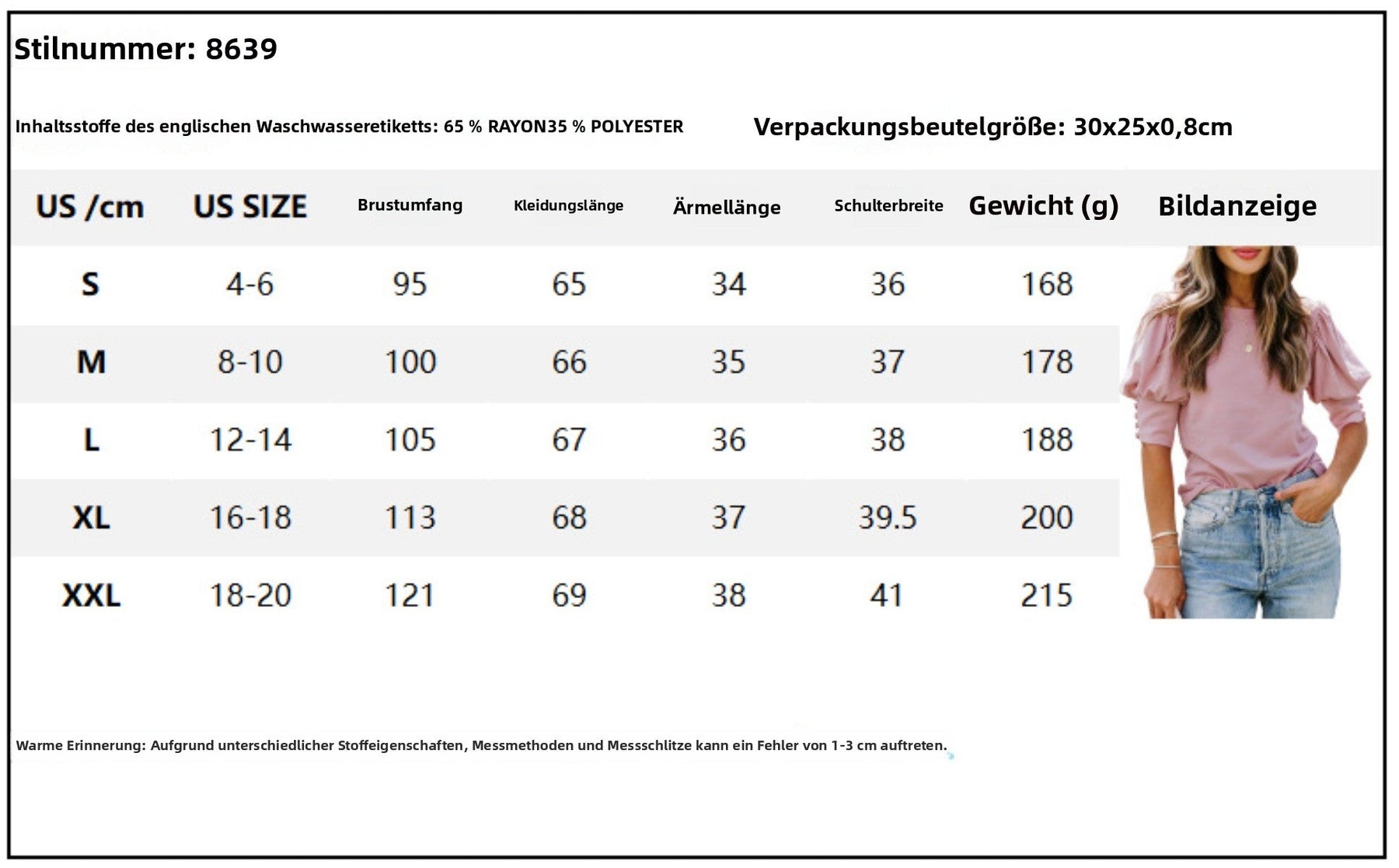 ✔ Le col rond classique met en valeur le visage avec douceur, tandis que les manches bouffantes ajoutent du volume et une touche moderne à votre silhouette.