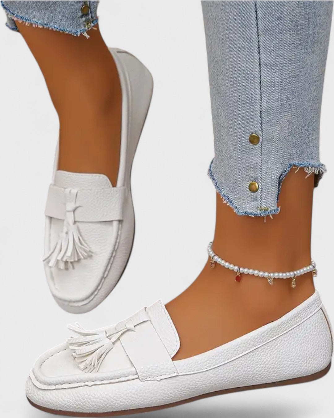 Les mocassins noirs apportent une touche d'élégance même aux tenues les plus décontractées – portez-les avec un jean ajusté et une chemise blanche. Les modèles blancs à franges dynamisent parfaitement les looks pastel ou beiges.