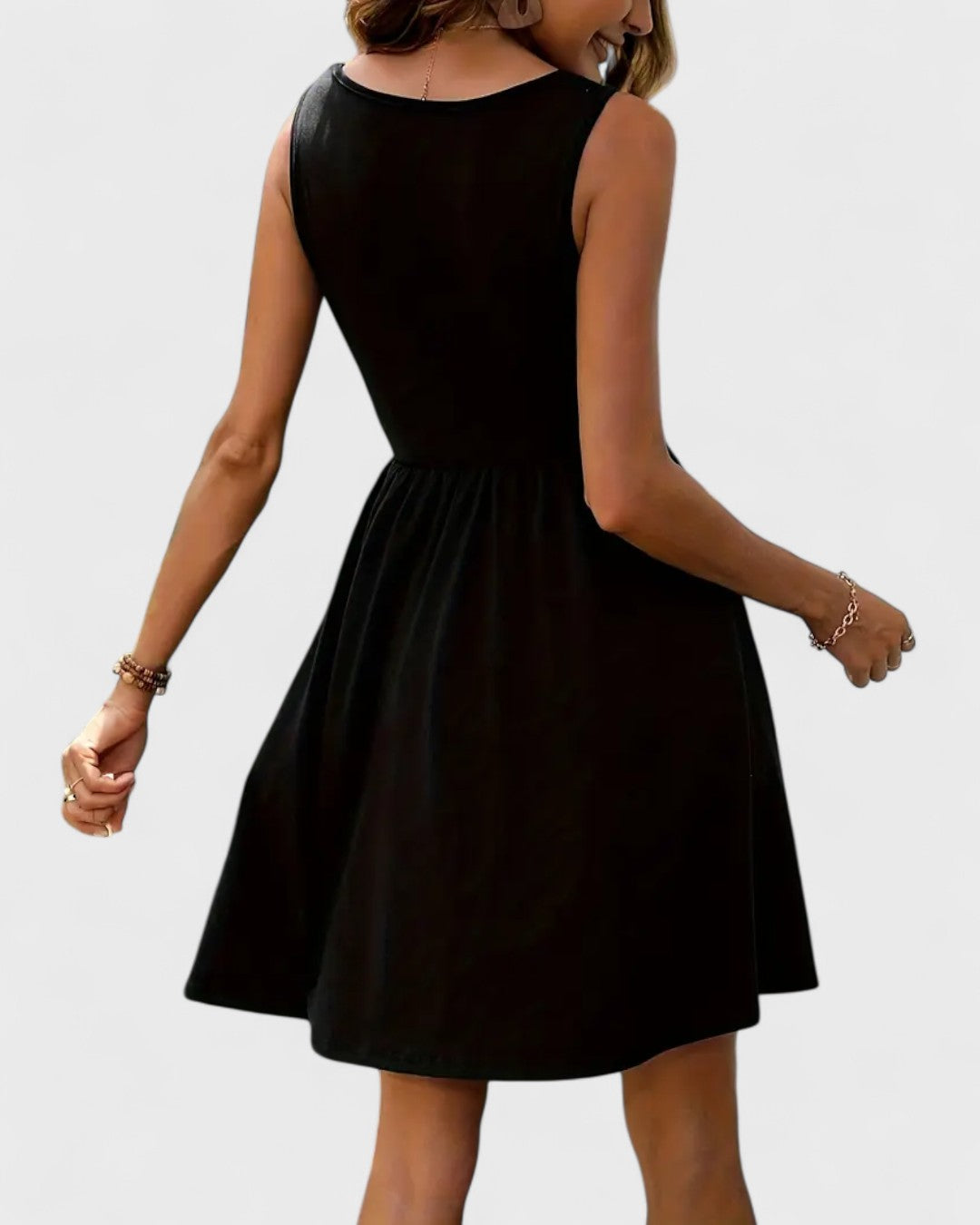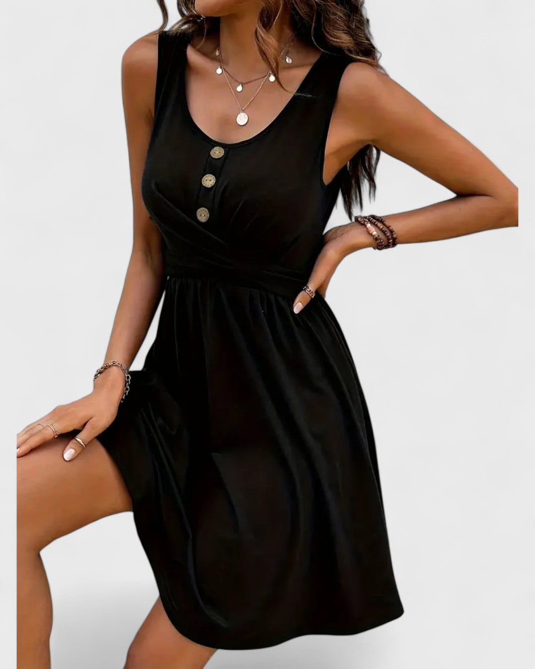 Amandine | Robe sans manches noire à boutons et taille cintrée