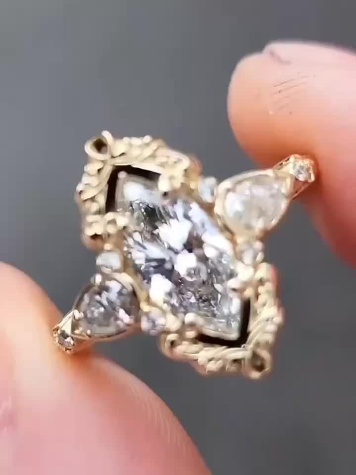 🇫🇷 Bague vintage spectaculaire au design français Marquise