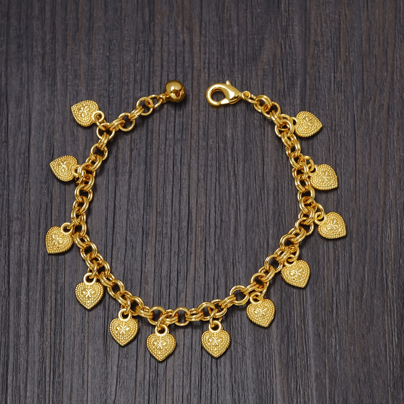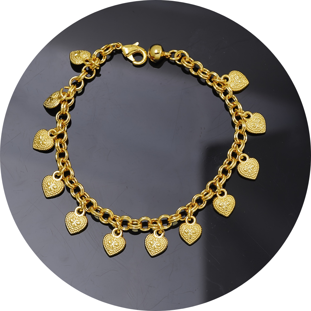 🇫🇷 Bracelet design gipsy français avec petits cœurs en or