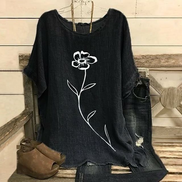 【Coton Et Lin】T-Shirt Décontracté À Imprimé Floral