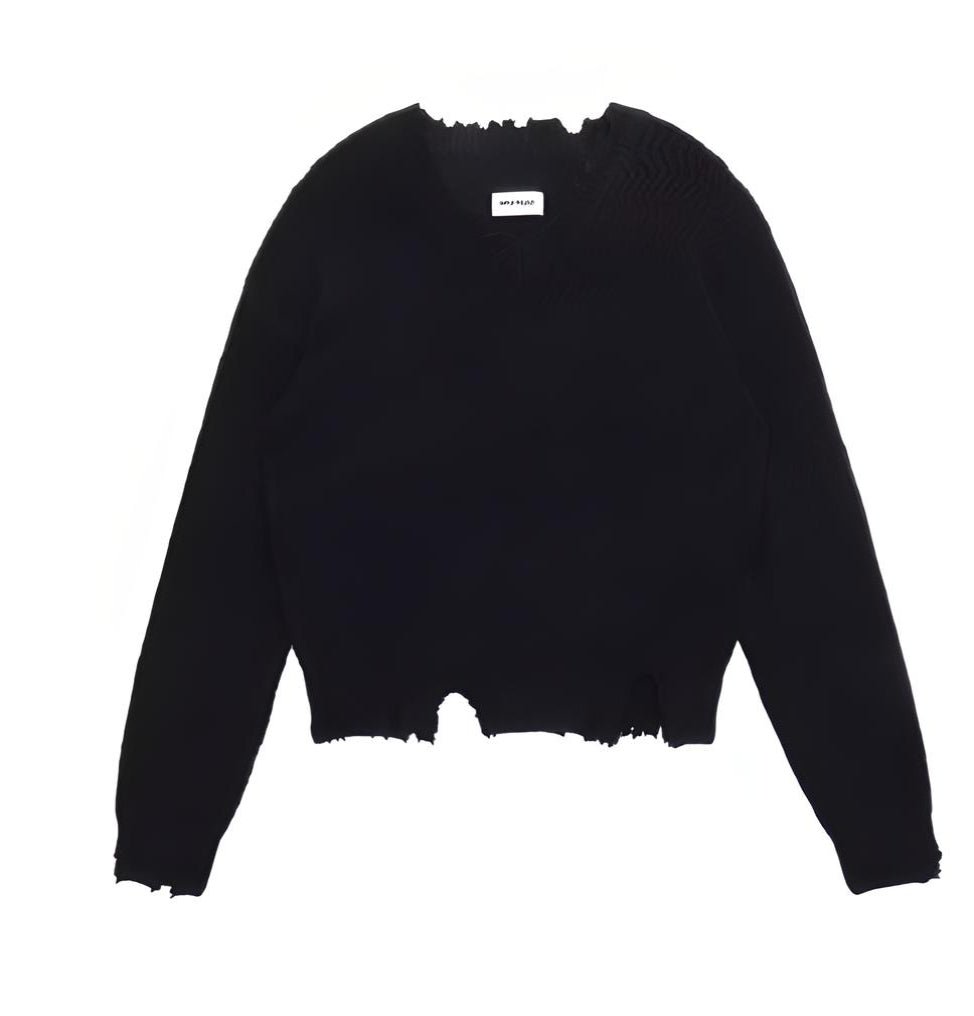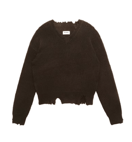 Wyn | Pull col V à texture endommagée Woolen Edge
